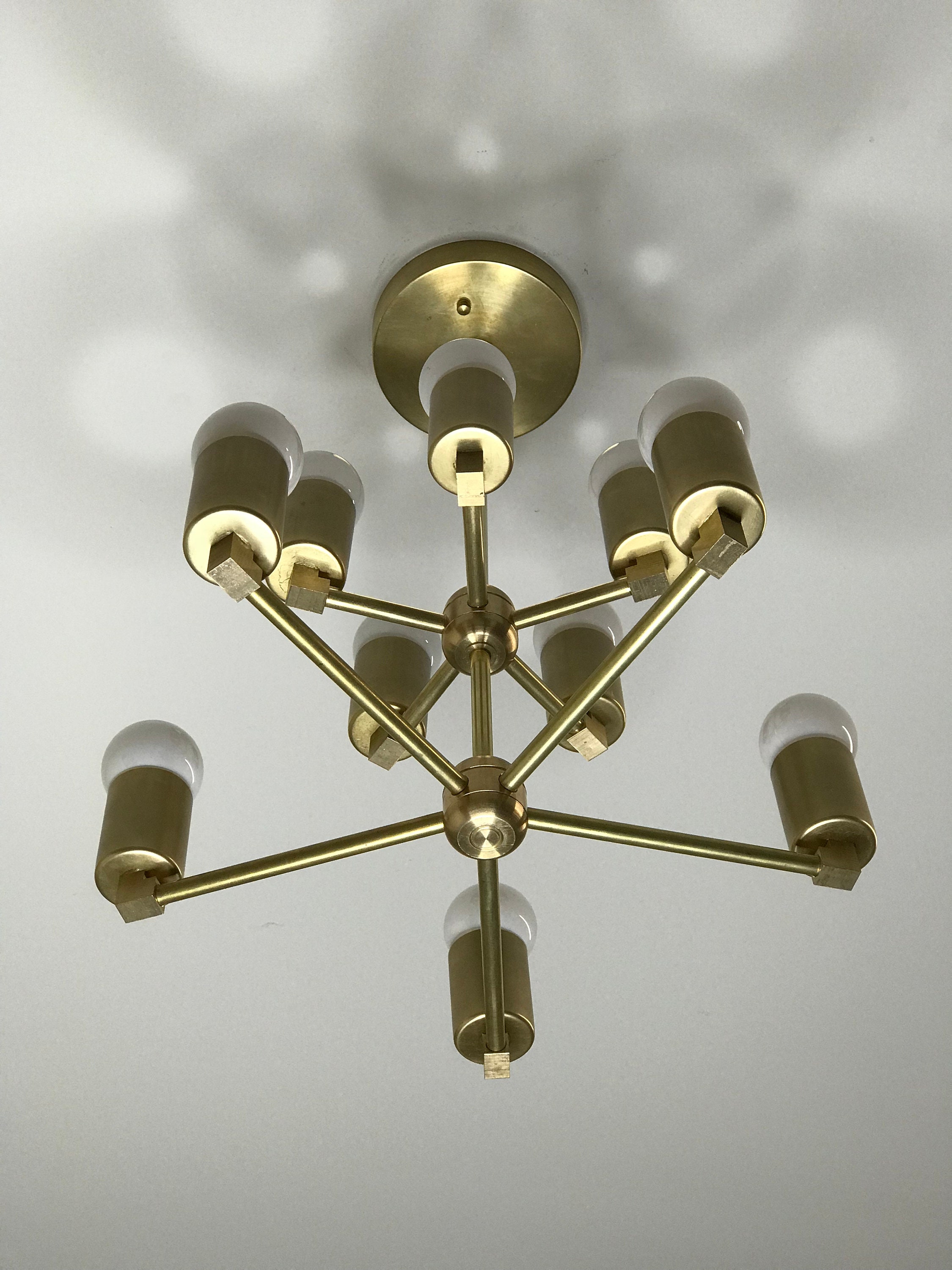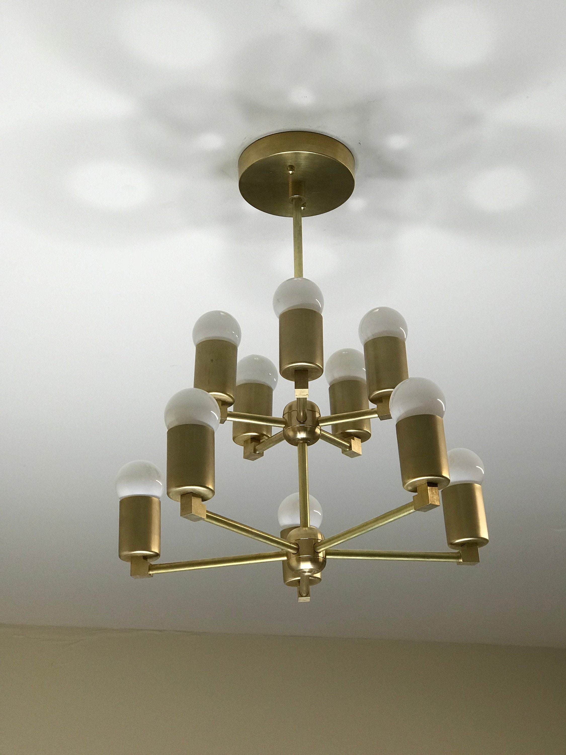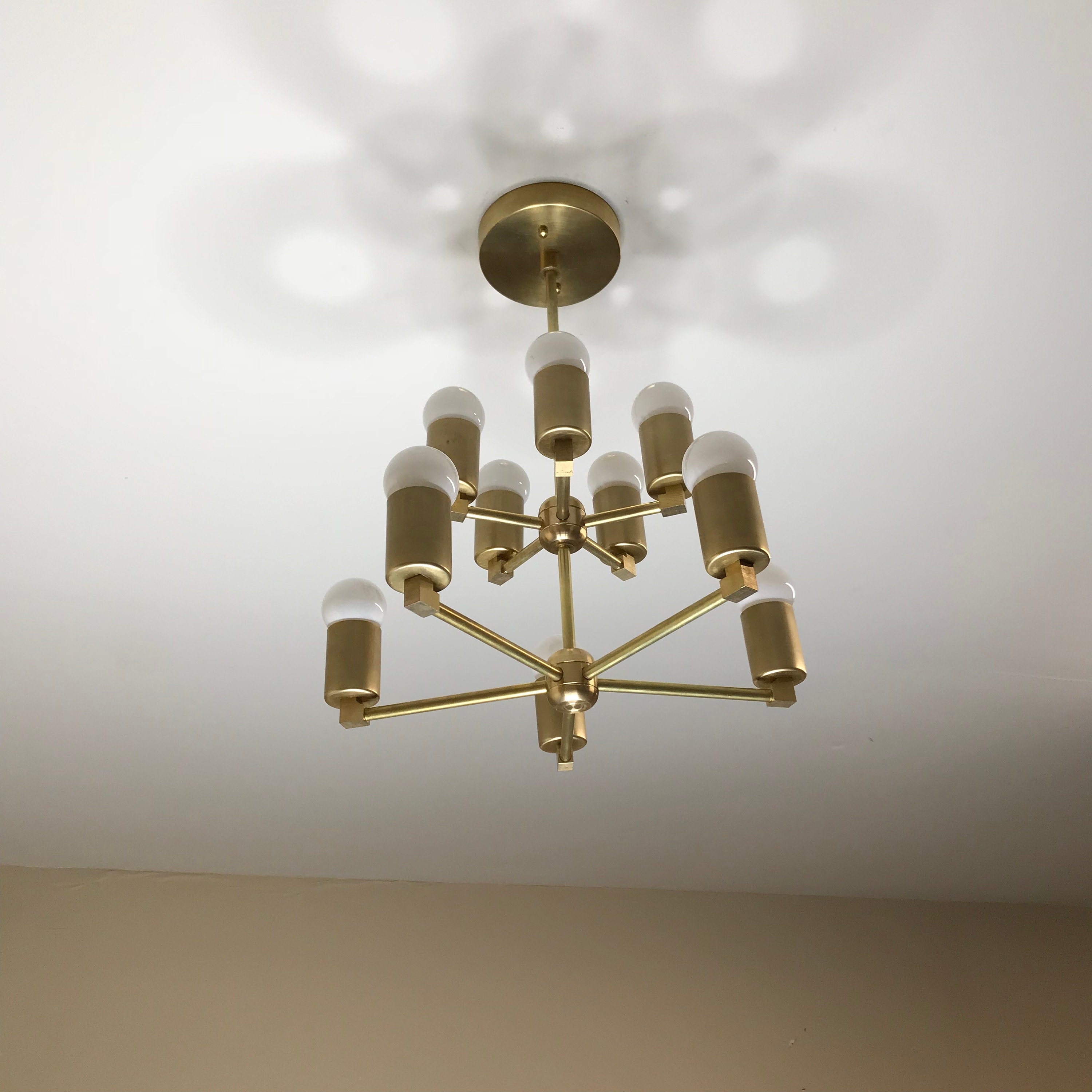 Modern Chandelier Raw Brass 10 Bulb Two Tier Sputnik Mid Century Industrial Lights