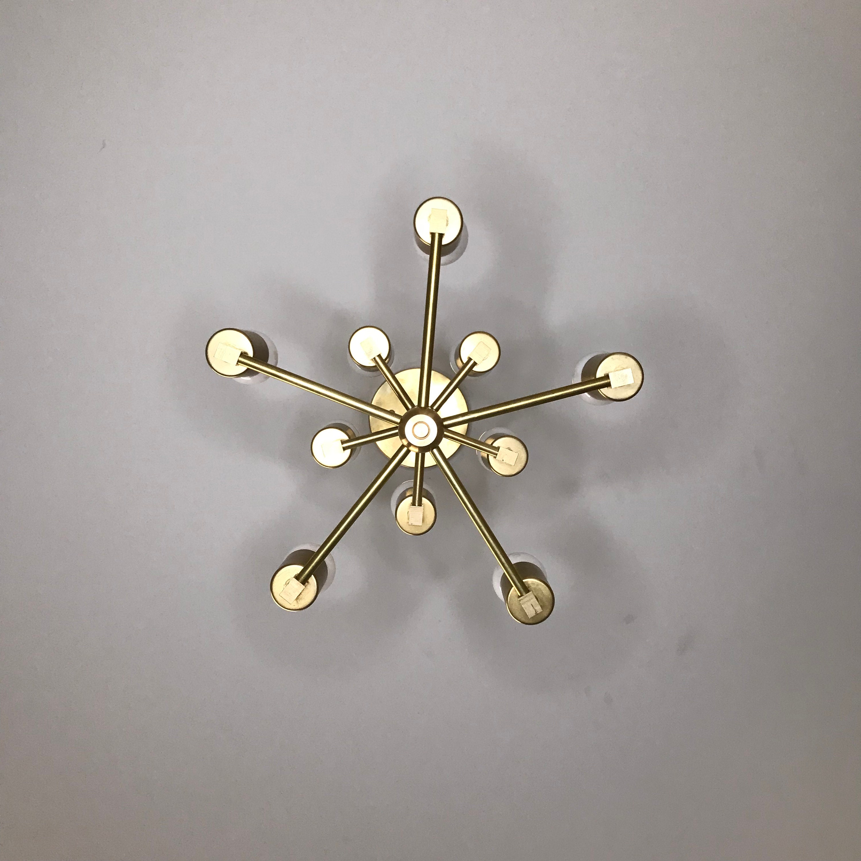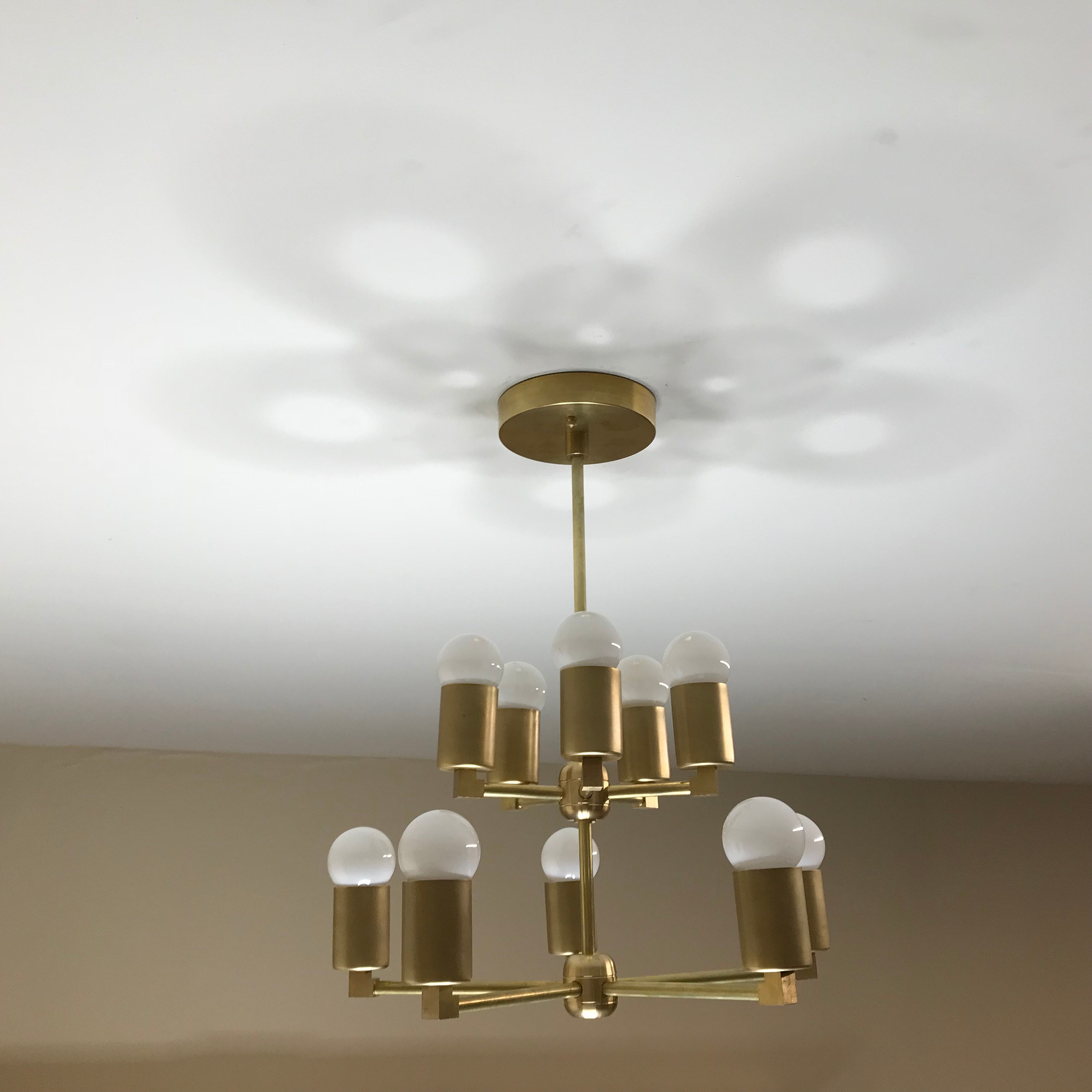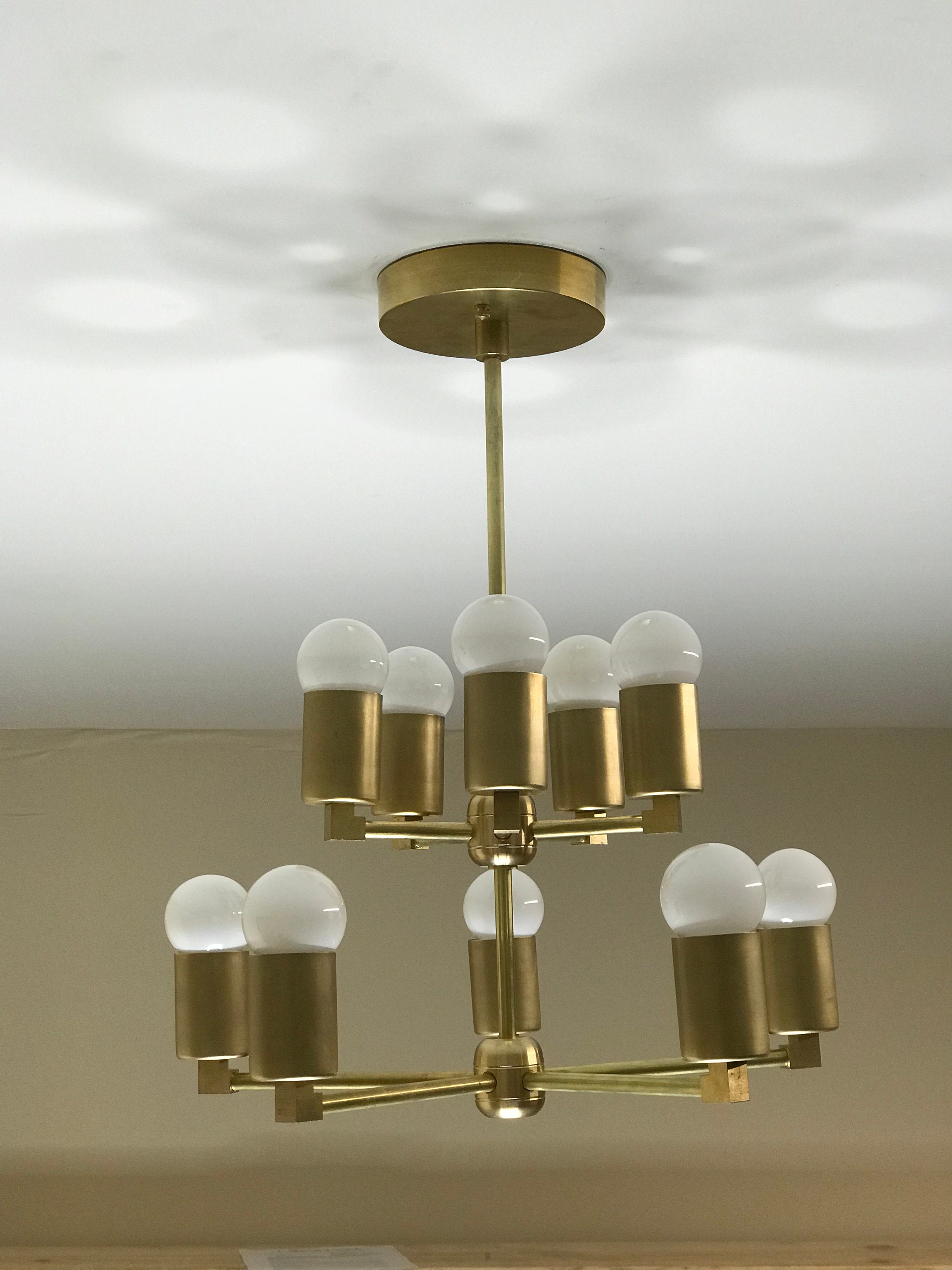 Modern Chandelier Raw Brass 10 Bulb Two Tier Sputnik Mid Century Industrial Lights